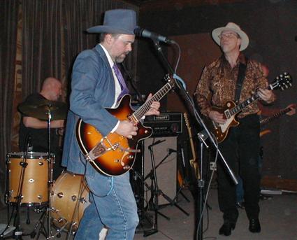 Caption: Jimmy Lester on drums, George Bradfute on guitar, and Webb.