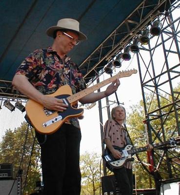 Caption: Webb and Tom, pickin' and smilin'