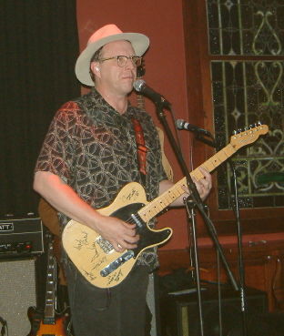 Caption: Webb warms up for the Halloween gig at the Uptown Music Cafe.